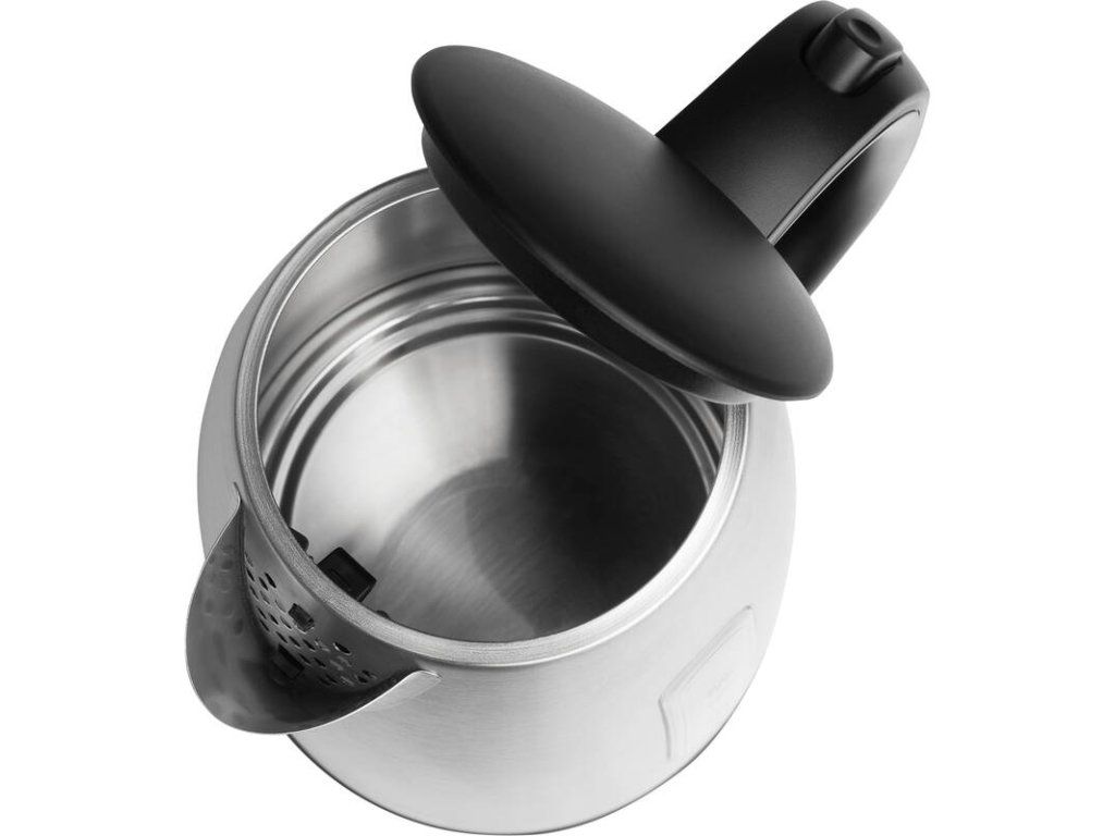 nerezová rychlovarná konvice v elegantním designu • objem: 1,7 litru • max. příkon: 2 200 W • světelná indikace • automatické vypínání i v případě dosažení bodu varu • omyvatelný filtr • hmotnost 1 kg (bez podstavce) Sencor SWK 1720BK, nerez Výrobce bílé techniky firma Sencor má ve své kolekci výrobků i rychlovarnou konvici, která se svým elegantním designem perfektně hodí do každé moderní domácnosti. Kvalitou přitom konvice patří do vyšší střední třídy a zaujme výborným poměrem cena/výbava. Vodu můžete zcela pohodlně nalévat, protože víko se otevře pouhým stisknutím tlačítka v držadle konvice. Důraz přitom Sencor kladl na komfort a bezpečnost. Proto je k dispozici šikovná funkce automatického vypnutí v případě dosažení bodu varu, jež usnadní manipulaci či dvojnásobný bezpečností systém. Zamezí tak přehřátí či spuštění konvice naprázdno. Elegantní, výkonná Objem vody může dosahovat až 1,7 l. Během několika desítek vteřin rychlovarná konvice ohřeje vodu pomocí příkonu 2 200 W. Požadovaný objem vody můžete kontrolovat prostřednictvím vodoznaku v zadní části konvice. Světelná kontrolka, která se nachází pod vodoznakem, signalizuje aktivní provoz konvice. Topná spirála je ukryta pod plochým nerezovým dnem. Zárukou maximální hygieny je pak vyjímatelný omyvatelný filtr a nechybí ani prostor pro uskladnění kabelu.